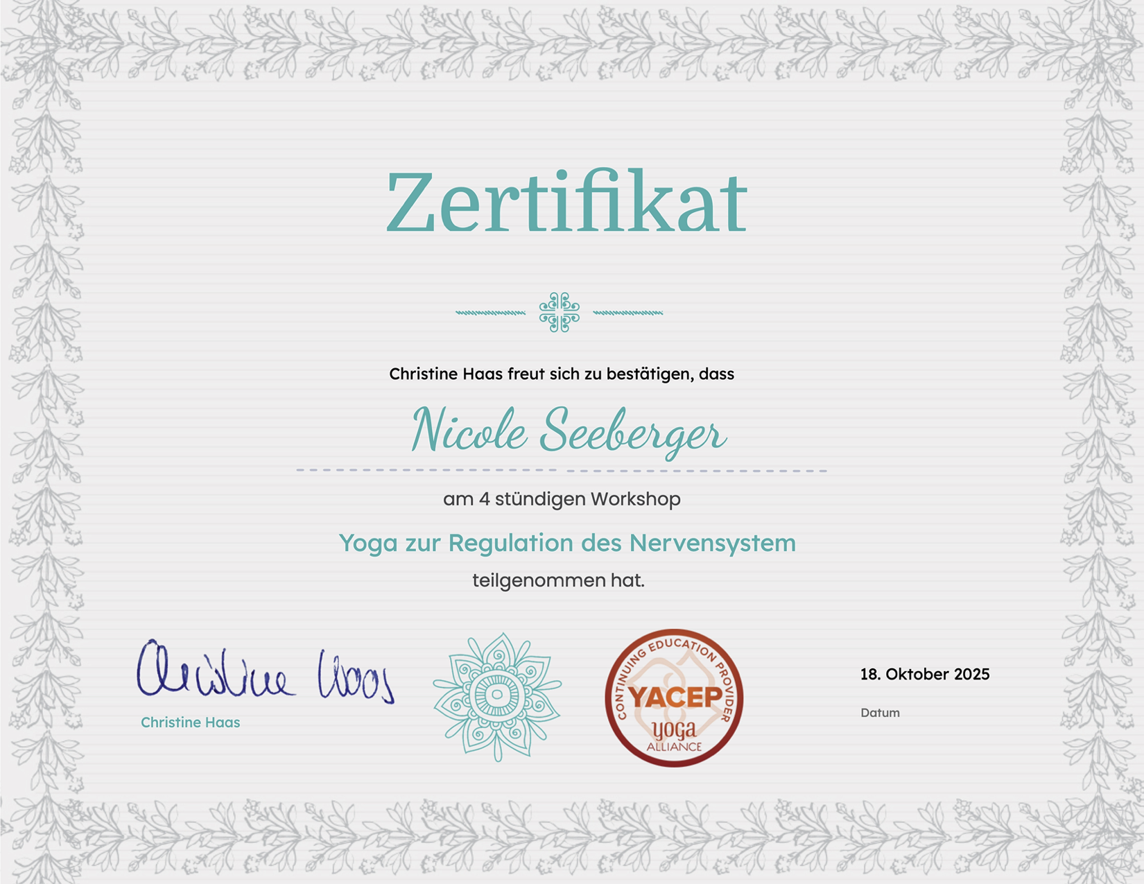 Dann entdeckte ich Yoga für mich – und schon nach kurzer Zeit spürte ich die Veränderung: Mein Körper wurde beweglicher, mein Kopf klarer und mein Herz ruhiger. Diese Erfahrung hat mich so berührt, dass ich 2023 meine Yogalehrer-Ausbildung absolviert habe.